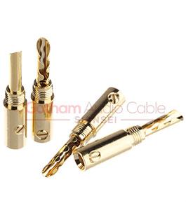 本来、SPケーブル直結が一番良いのでしょうがセッティングのストレスや、接続後の緩みを考えるとバナナプラグは必要です。銅製・金メッキのこのプラグは、tightにしっかり接続できますし頻回の抜き差しでも全く緩みません。