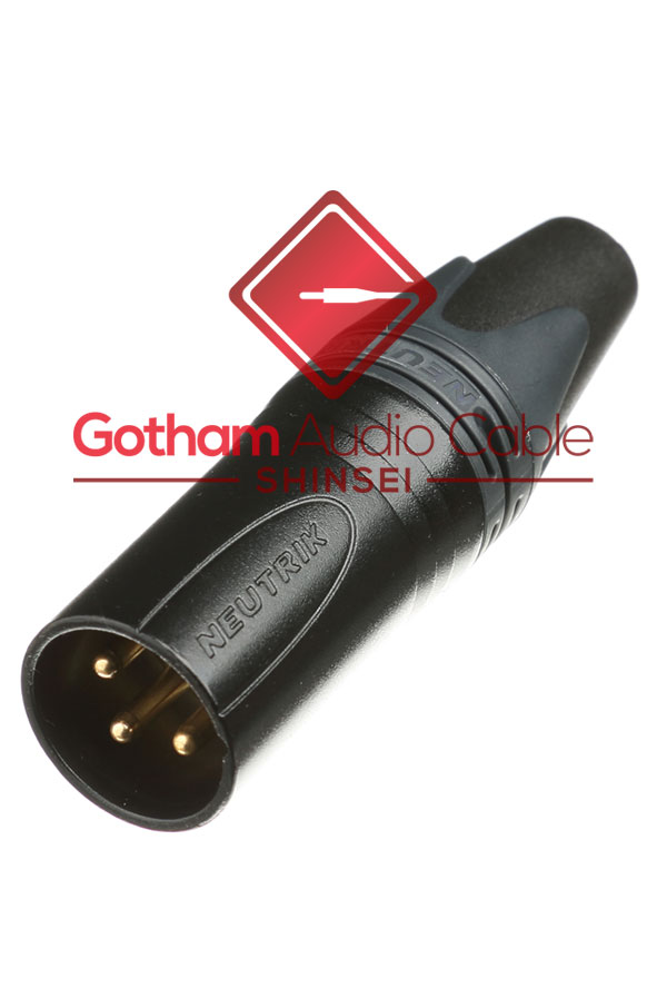金メッキのXLRコネクターオス。 適合ケーブル外径 φ3.5~8.0mm コンタクト/金メッキ ハウジング/黒クロームメッキ